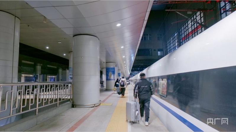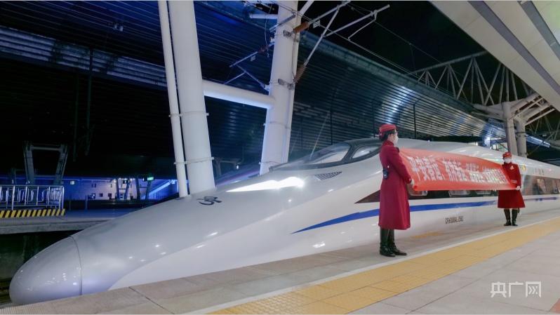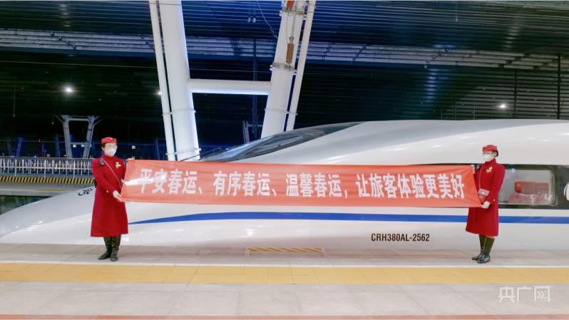 北京地区首趟春运列车G6701次(央广网记者 朱冠安 摄)