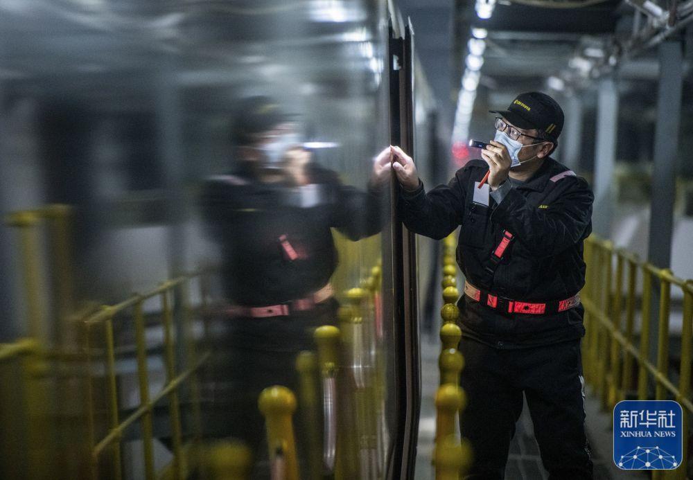 1月6日,地勤机械师在检查动车组车体外观状态。新华社记者 伍志尊 摄