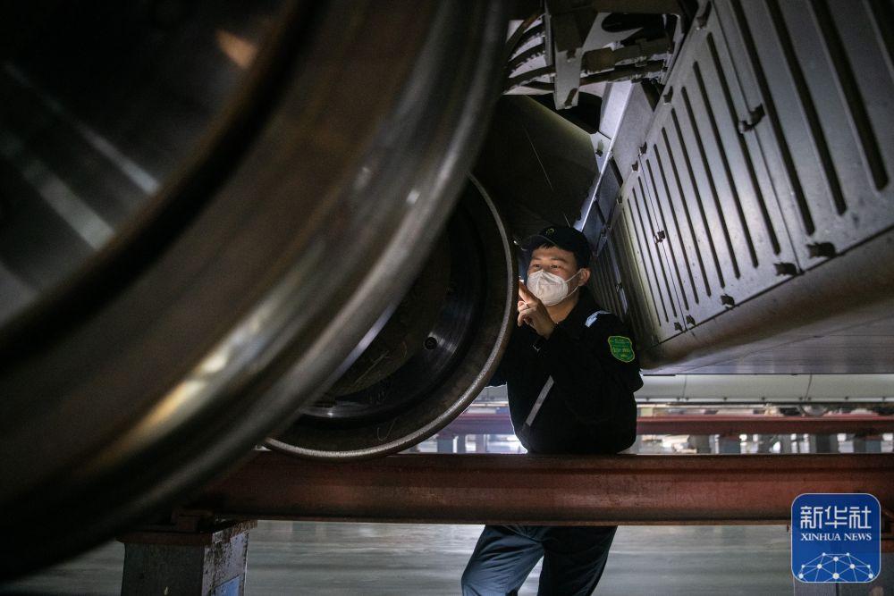 1月6日,地勤机械师在检查动车组列车状态。新华社记者 伍志尊 摄