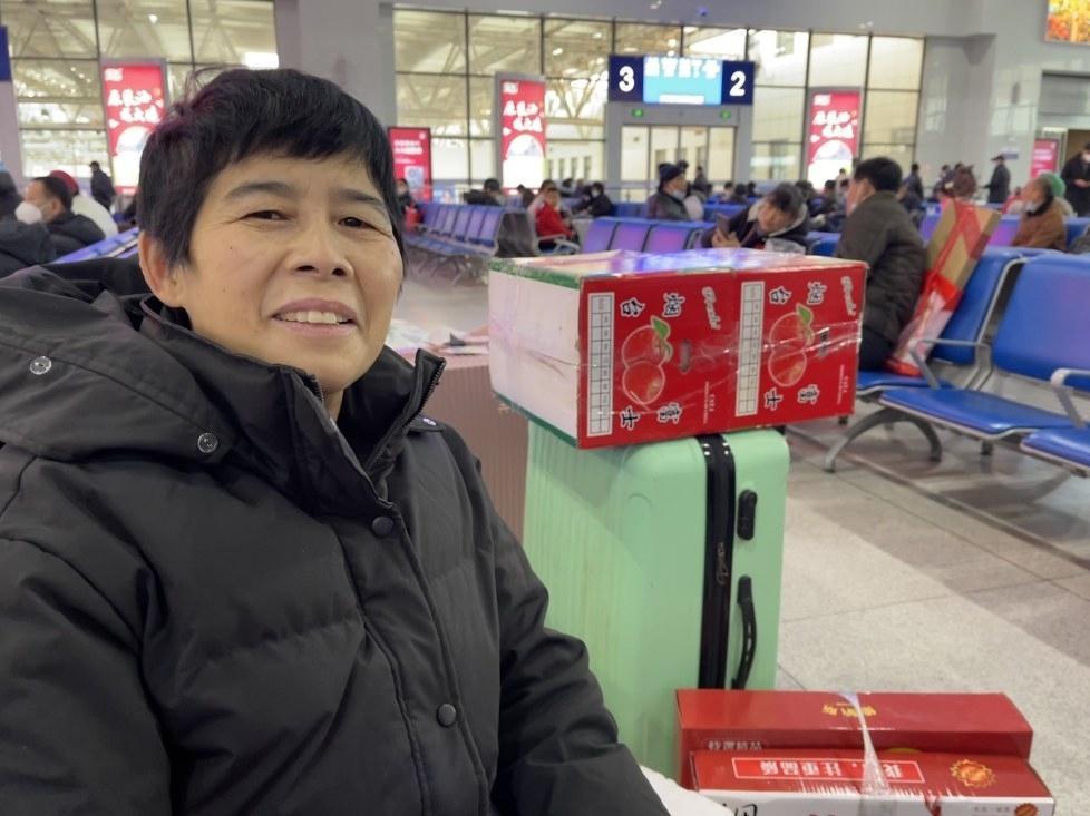 她,随身带了4箱烟台苹果和两箱海鲜,要捎给一年未见的儿女尝鲜;