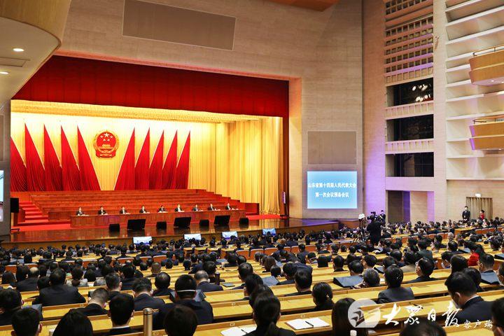 1月12日下午,山东省第十四届人民代表大会第一次会议预备会议,在山东会堂举行。省十三届人大常委会副主任、党组书记杨东奇主持预备会议并讲话。张江汀、孙立成、王随莲、王良、齐涛、王云鹏、王华、惠新安等省十三届人大常委会组成人员出席会议。