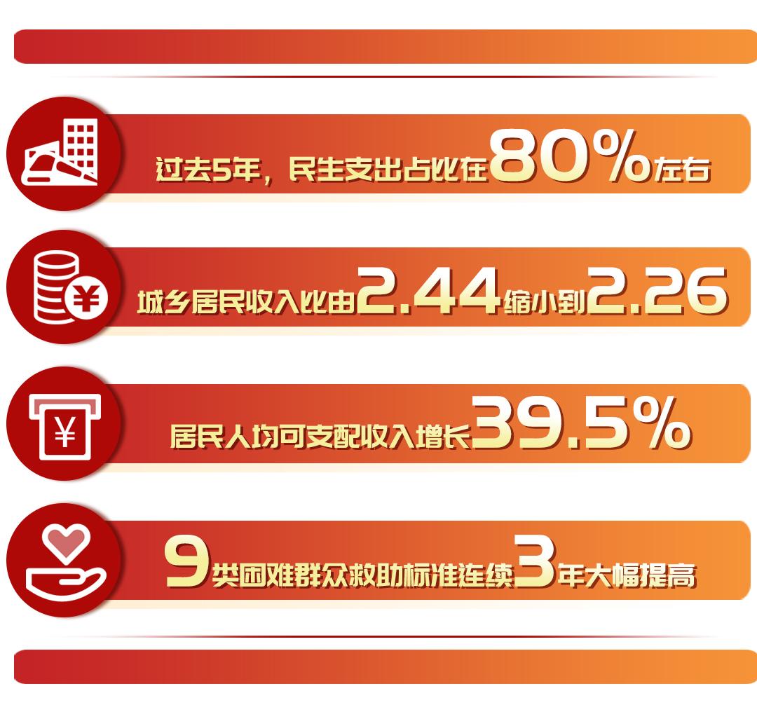 过去五年,民生支出占比稳定在80%左右,城乡居民收入比由2.44缩小到2.26,居民人均可支配收入增长39.5%,9类困难群众救助标准连续3年大幅提高,这些都关系到山东群众对美好生活的切身感受。