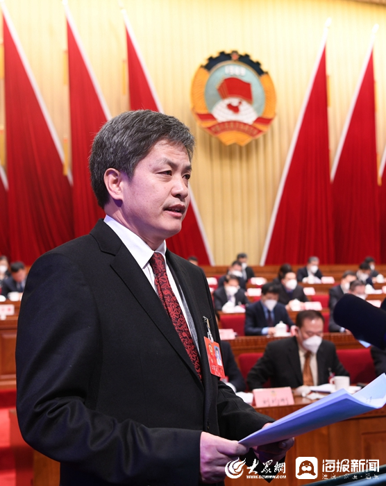 李秀启委员代表民进山东省委会,作了题为《谋篇布局 全力攻坚 加速科技创新平台能级跃升》的发言(摄影:范隆)