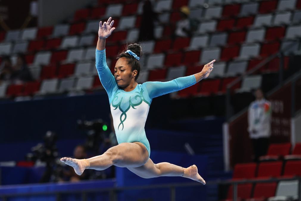 8月3日,斯里兰卡队选手阿马娅·卡洛克塔吉在女子团体决赛及个人资格赛平衡木比赛中。新华社记者张丽芸摄
