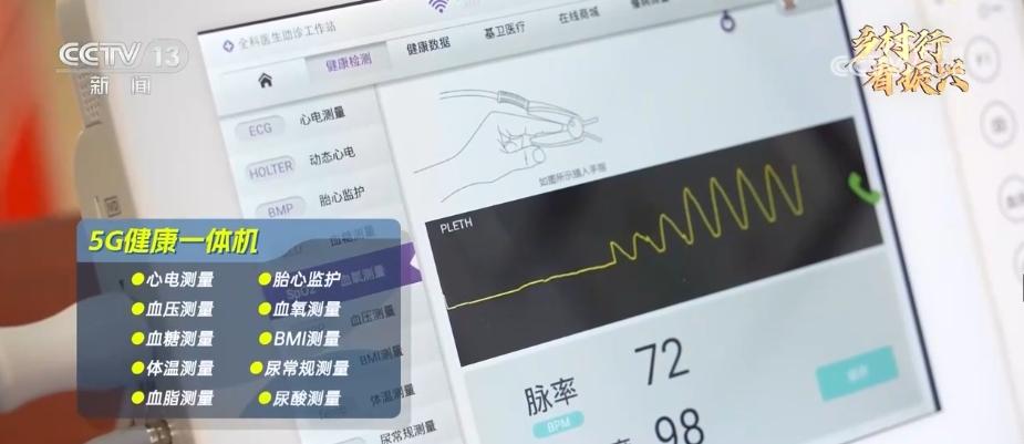 以前的葫芦村卫生室,只有体温计、听诊器、血压计“老三样”,给村民看病开药只能凭经验。如今,有了5G健康一体机这个“好帮手”,村医符永权一下子成为了“全能手”,还能为2000多名村民提供健康管理。