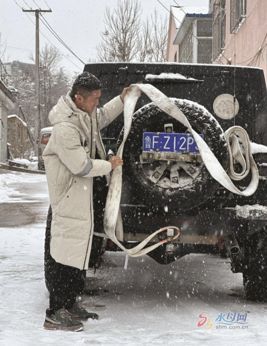 随后,记者辗转联系上了热心司机路运鹏,今年31岁的他介绍了当晚的情况。19日晚8时许,住在栖霞市民生路附近的路运鹏出门发现,这条东西走向主干道有一段坡度较大的陡坡路段,当时有一些车辆趴窝在雪地里,还有一些车辆在爬坡过程中出现打滑溜车,情况非常危险。见状,路运鹏将自己的越野车开了出来前去救援,一辆接一辆地将被困的轿车、货车拖拽出困境。最让路运鹏感到“吃力而惊心”的是,拖拽两辆大货车的时候,他这辆越野车在大货车面前显得有些渺小,不过在路运鹏小心驾驶下,大货车也缓慢地跟随着爬上了坡顶。一辆长约19米的河北籍大货车在路运鹏的拖拽下慢慢地爬着坡,因担心大货车太重会拉断拖拽绳出现险情,路运鹏驾驶车辆时更是小心翼翼,最终将车辆拉上坡。