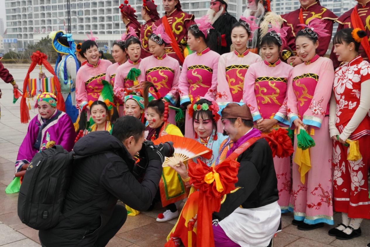 “咚咚锵,咚咚锵”欢快喜庆的锣鼓声迅速吸引了采访团的老师们,首批入选国家级非物质文化遗产的海阳大秧歌展现在眼前。28日上午,采风团一行来到海阳市参观,在凤凰广场,热烈欢快的海阳大秧歌吸引了采风团老师的目光,镜头纷纷聚焦在大秧歌演员的身上,大家用手中的相机记录着非遗的风采。
