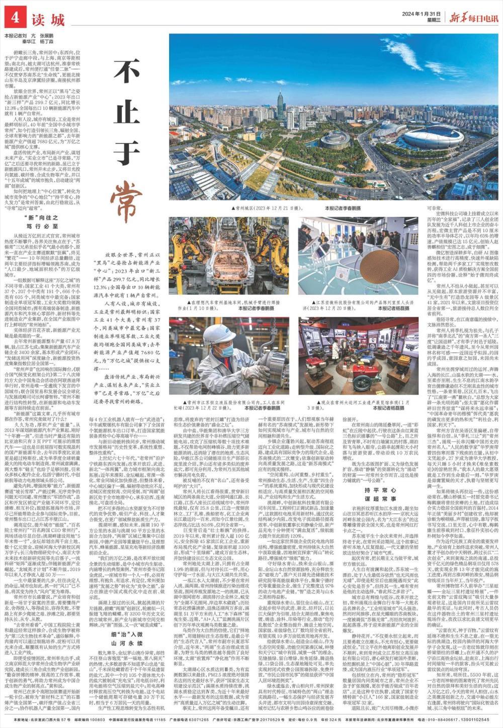 “常州声音”也回响在国际舞台。《联合国气候变化框架公约》第二十八次缔约方大会中国角边会活动在阿联酋迪拜举行时,常州是唯一受邀线下发言的中国城市;联合国贸易和发展会议全球化与发展战略司司长柯睿智称,“常州不断进行结构性转型,在新能源和电动车发展等方面持续走在前面。”