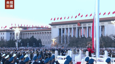 在雄壮的国歌声中
