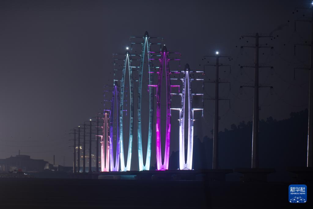 据介绍,该项目是中马共建“一带一路”合作项目,全长8.5公里,毗邻槟威大桥。项目建设的31座输电杆塔横跨槟威海峡,其中6座标志性双肢结构杆塔采用“槟榔果”外形设计并装有景观灯,呈现出独特的视觉效果。