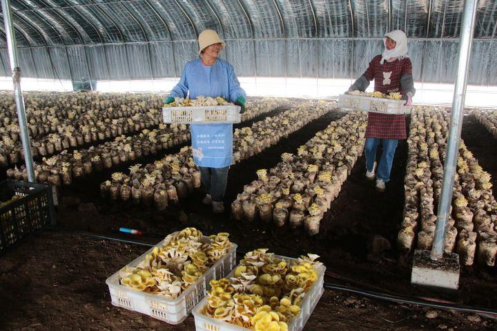 大棚里,一排排菌棒长势喜人;回汉群众正熟练分拣、包装新鲜的杏鲍菇;运输工人正忙着搬运、装车……园区日产各类鲜菇5吨,年产值达1300万元。