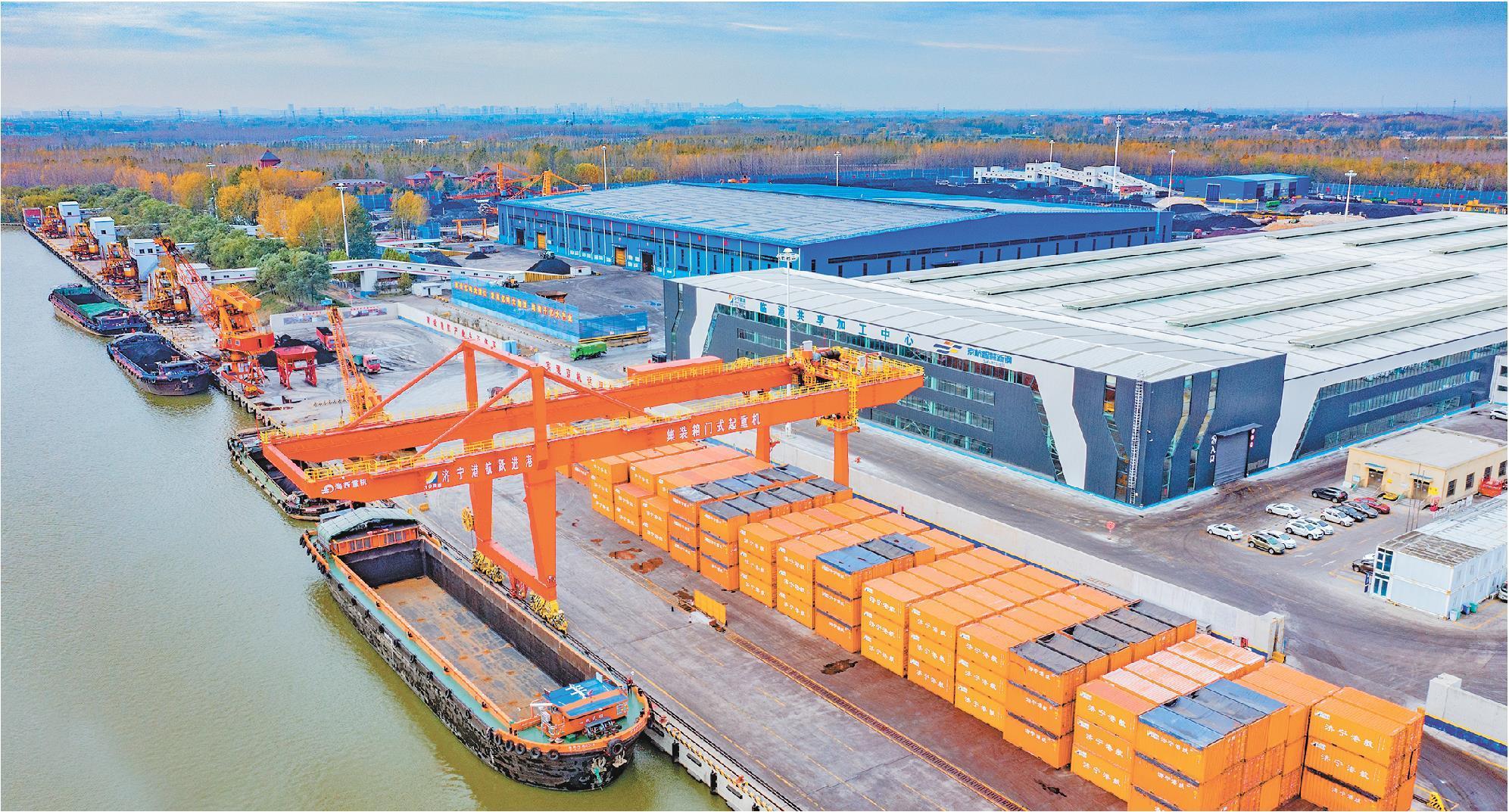 如今,济宁不仅实现了通江达海,还在资源型城市转型上驶向了一片“蓝海”。预计2024年全年,济宁港口货物吞吐量、集装箱吞吐量分别突破9500万吨、40万标箱,稳居山东省内河港口首位。