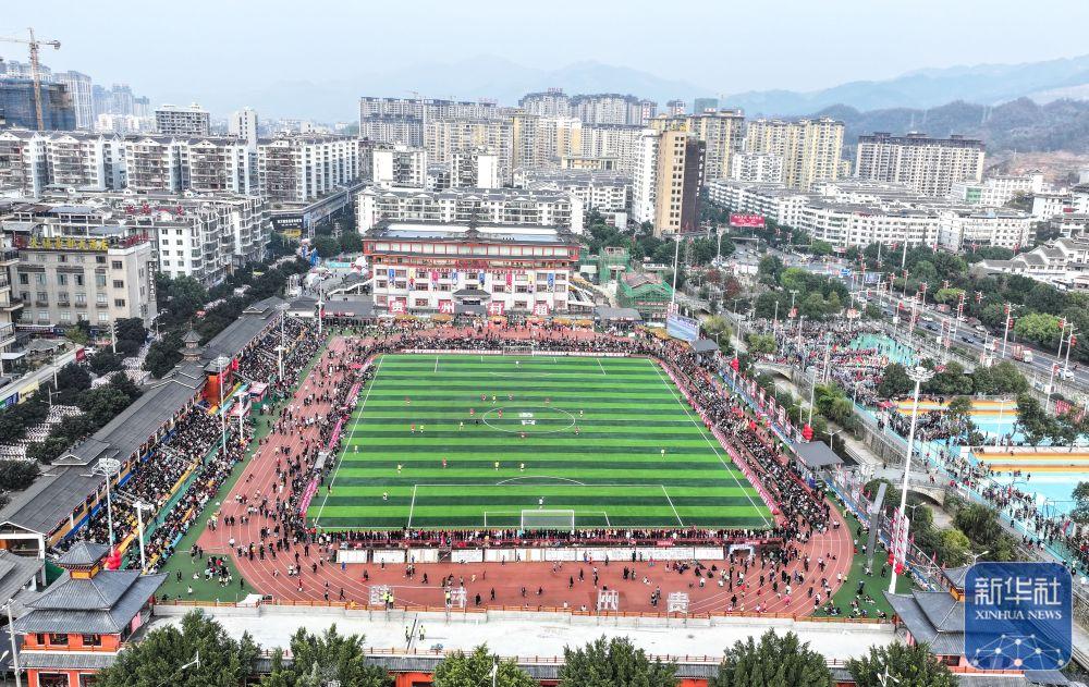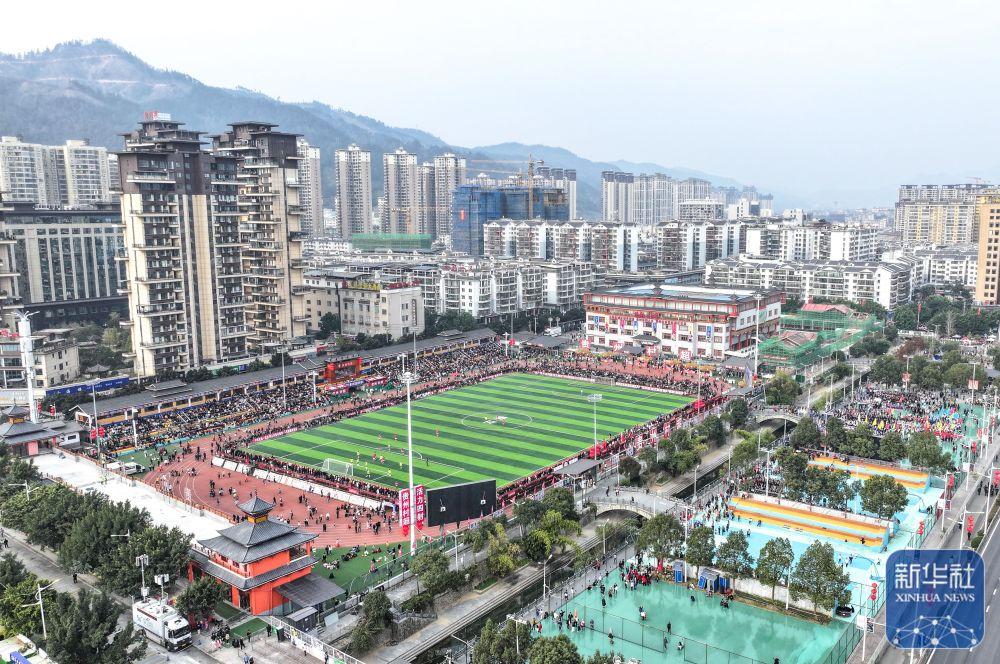 ↑这是1月4日拍摄的“村超”揭幕战现场(无人机照片)。