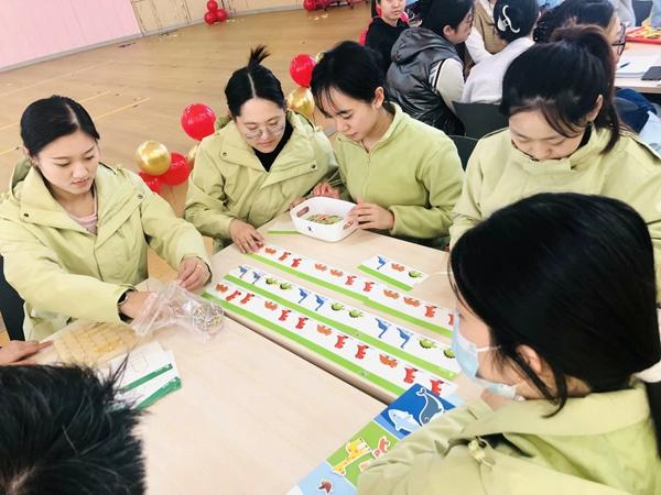 研讨环节,教师们探讨了不同年龄段幼儿数学的核心经验,并通过数学材料的操作,体验到幼儿实际操作式学习的快乐,掌握了在游戏中渗透教育目标的策略。同时也明确了数学材料投放规划,材料收纳管理等方面内容。