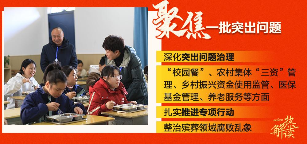 以“校园餐”问题为例。2024年,中央纪委国家监委督促有关部门首次摸清全国中小学食堂及供餐情况等底数,指导各级监察机关依法查处贪占学生餐费、插手招标采购、收受回扣等问题3.8万件,处分2.3万人。在斩断伸向“校园餐”的“黑手”的同时,补上了监管制度的漏洞。中央纪委国家监委会同教育部、市场监管总局、财政部等单位,制定“校园餐”管理监督指导意见,推动完善膳食经费管理等制度,确保每一笔资金来源与去向都在阳光下透明运作。