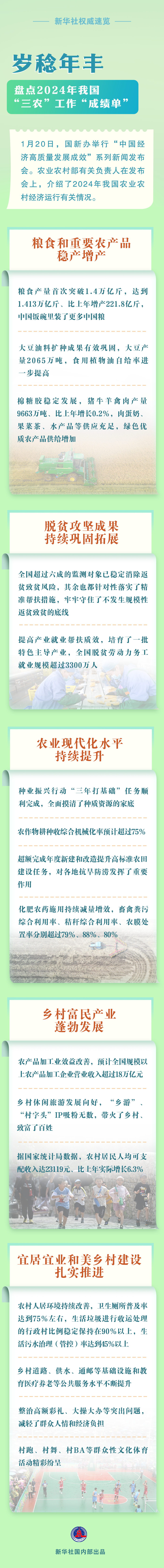 新华社权威速览丨岁稔年丰 盘点2024年我国“三农”工作“成绩单”