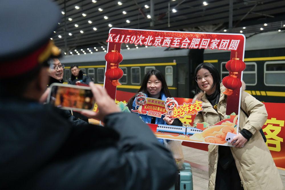 旅客刘露露是第一次坐务工专列回家。“跟我的妈妈一起,我非常激动。”她说。旅客周爵伍说,“我有一整年没有见到我年迈的母亲了,我很激动,希望早一点回家看见我的母亲。”