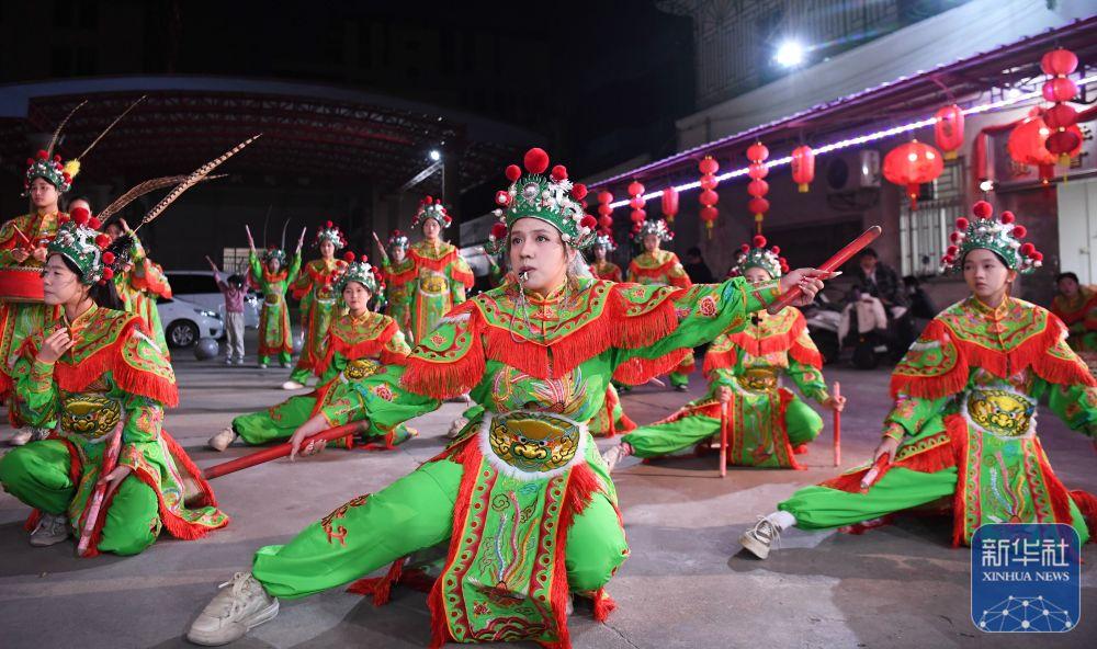 临近春节,潮汕英歌艺人迎来一年中最繁忙的展演时节。在广东汕头市潮阳区,塔馆英歌队、西门女子英歌队召集队员在夜间加紧排练,为节庆巡游进行最后的准备。 英歌是广东潮汕地区的传统民俗舞蹈,融汇戏剧、舞蹈、武术等多种元素于一体,表演气势澎湃,又被称为“中华战舞”,2006年入选首批国家级非物质文化遗产名录。