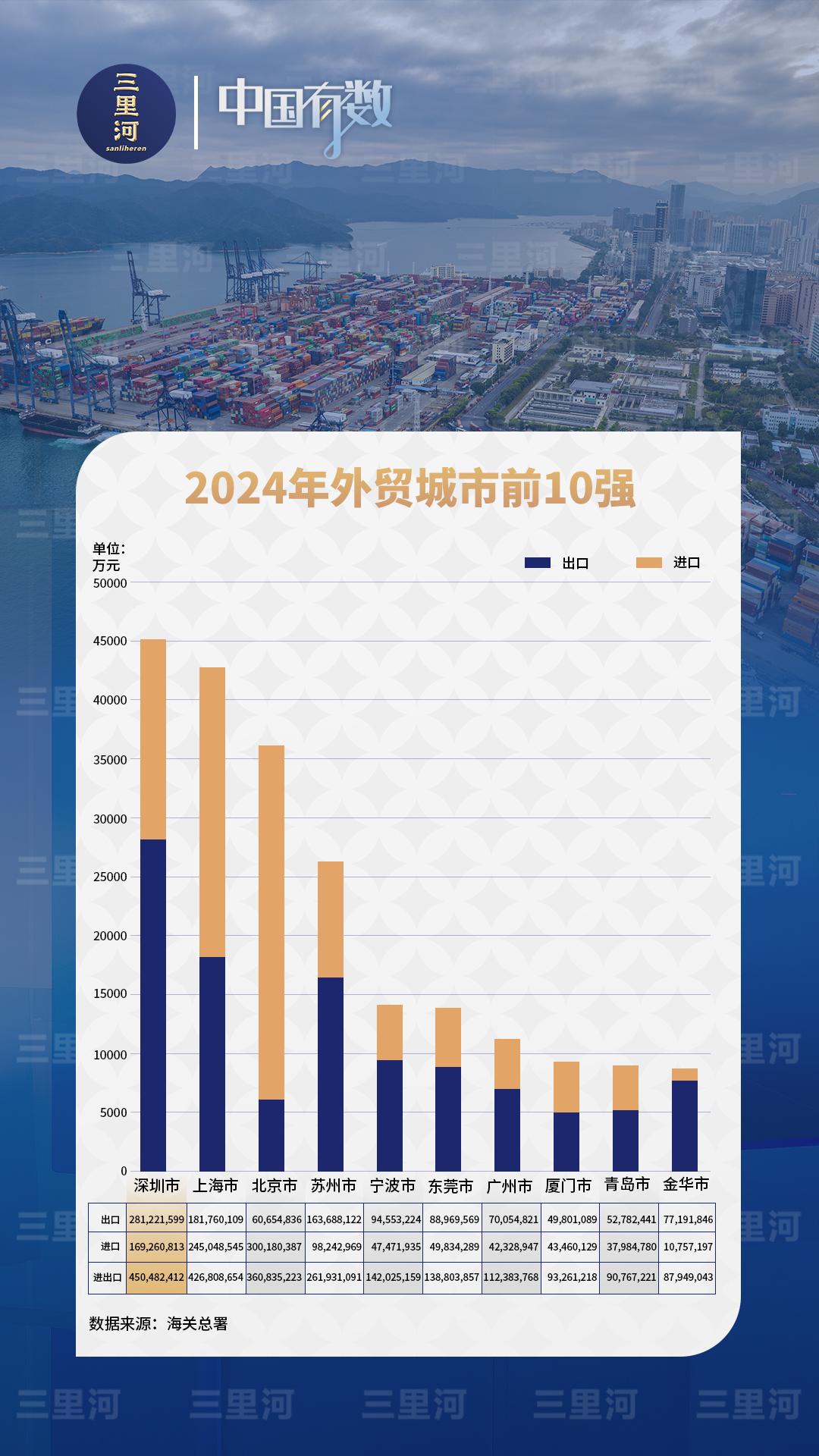 2024年,深圳时隔9年后重登内地外贸城市首位,进口、出口均为历史新高。