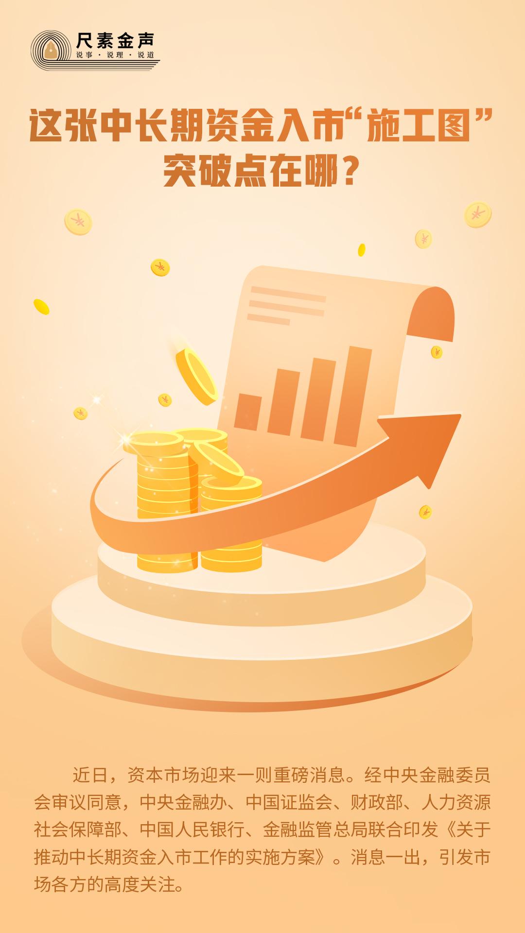 事实上,关于中长期资金入市纲领性文件去年已经“露面”。去年9月,中央金融办、中国证监会曾联合印发《关于推动中长期资金入市的指导意见》,着眼于“长钱更多、长钱更长、回报更优”的总体目标,重点提出建设培育鼓励长期投资的资本市场生态、大力发展权益类公募基金、着力完善各类中长期资金入市配套政策制度三方面举措。意见亮出了“路线图”,而此次更具有实操性的实施方案出台,意味着“施工图”已经铺开。从这份“施工图”中,我们看到了不少的突破。