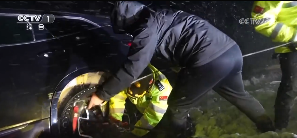山西:交警替车主驾车 驶离结冰路面