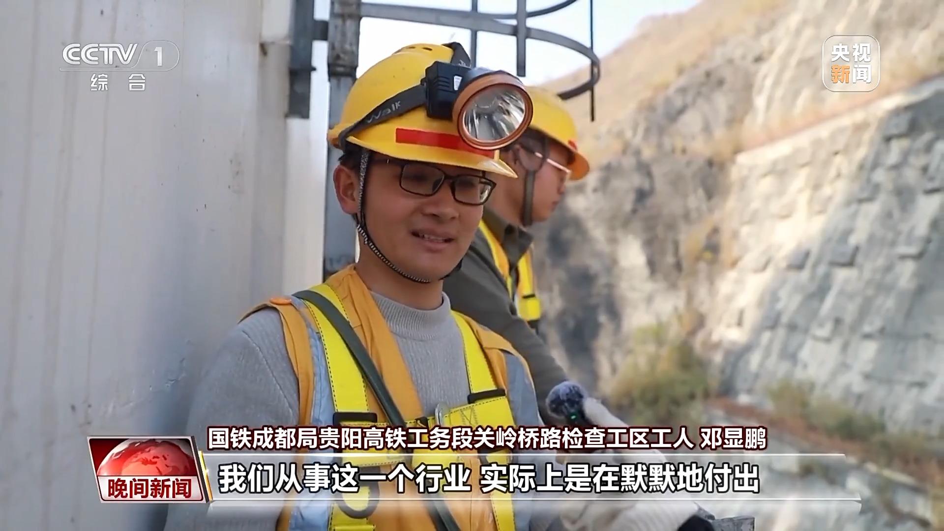 国铁成都局贵阳高铁工务段关岭桥路检查工区工人 邓显鹏:首先要检查墩内有无积水,还有就是检查墩身是否有裂纹。中国高铁是中国的一张名片,我们从事这一个行业,实际上是在默默付出,但我内心还是感到非常自豪的,就算不能被看见。