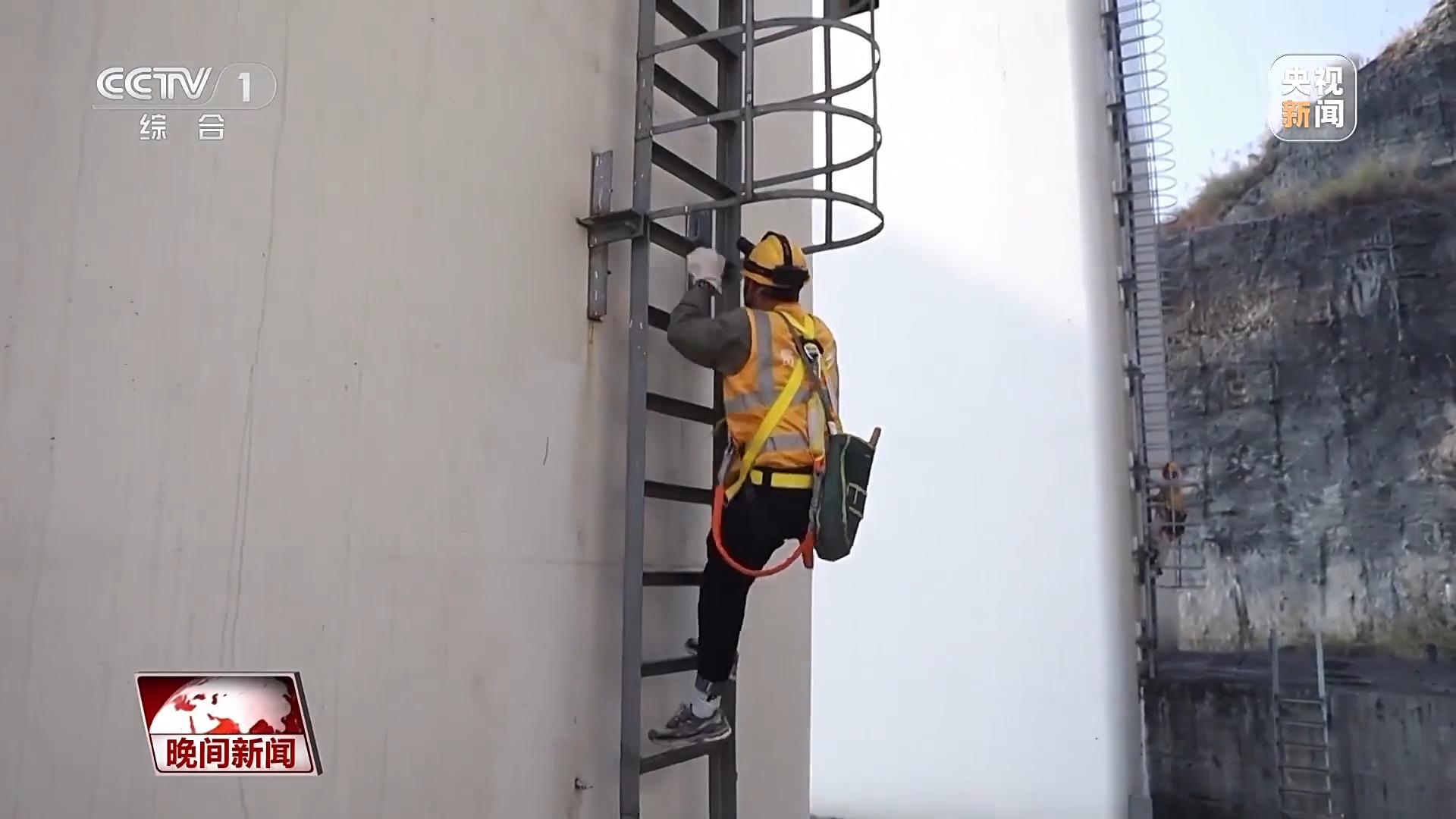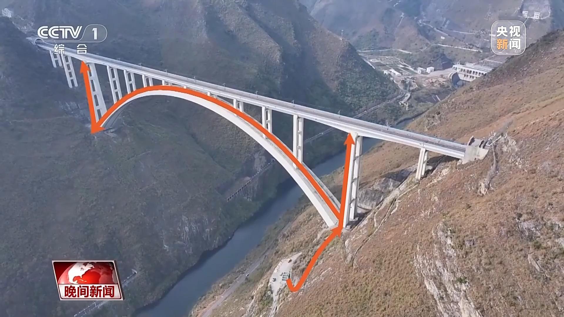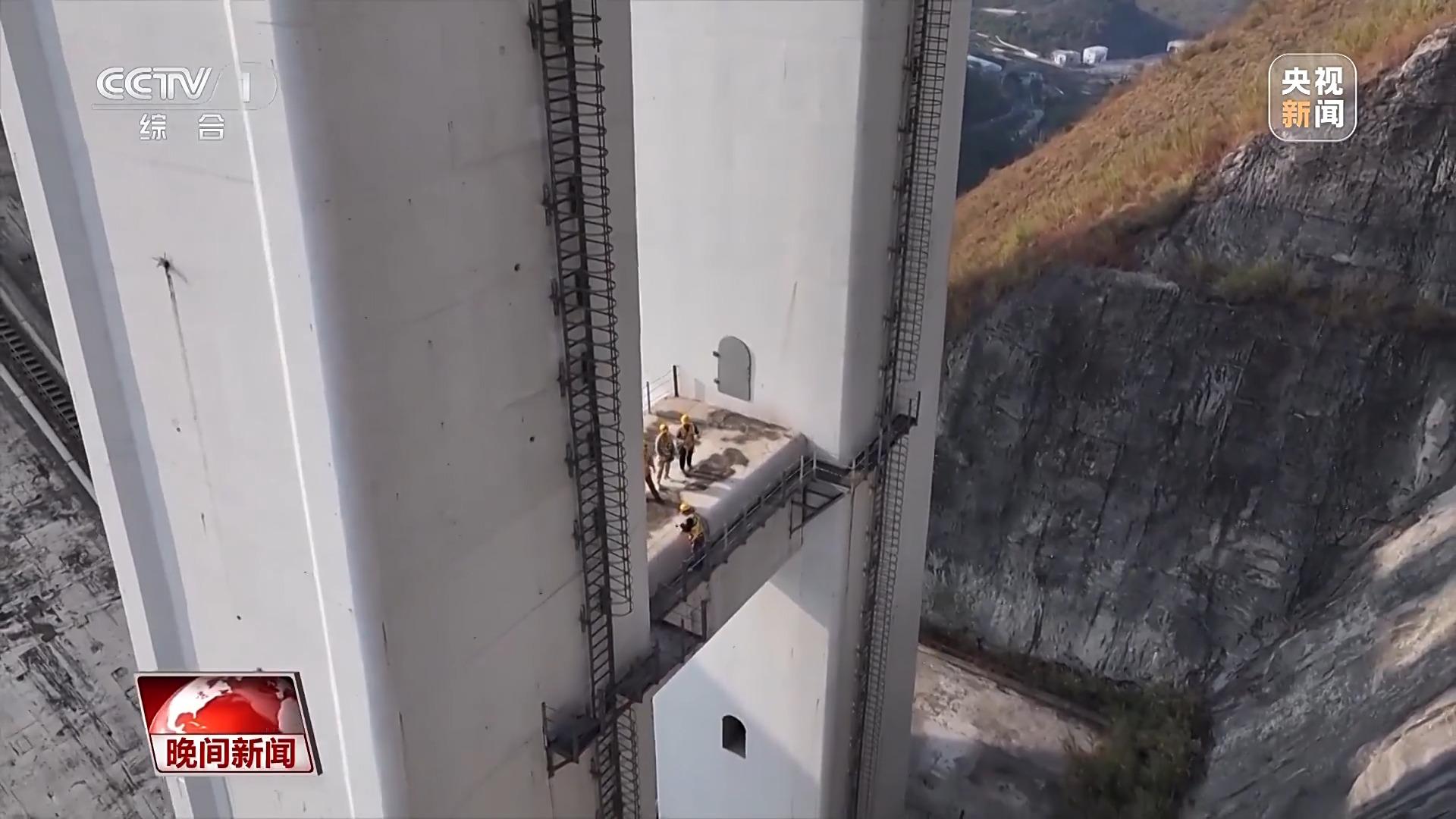 总台央视记者姜珊:我们刚刚是翻了一座山才来到这个地方的,可以清晰看到桥墩,桥面距离底下的江面的距离,大概是有300米,也就是相当于100多层楼的高度。