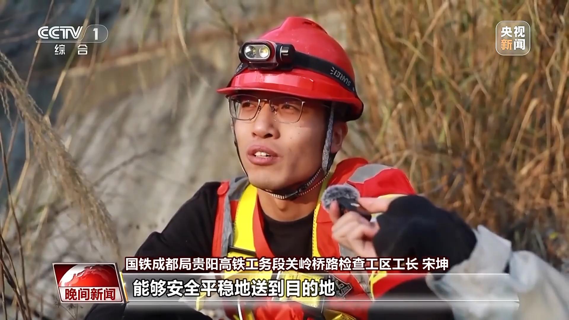国铁成都局贵阳高铁工务段关岭桥路检查工区工长 宋坤:每天望着一列列高铁,把乘客、旅客能够安全平稳地送到目的地,能够保证高铁安全,万无一失,这一点已经知足了。