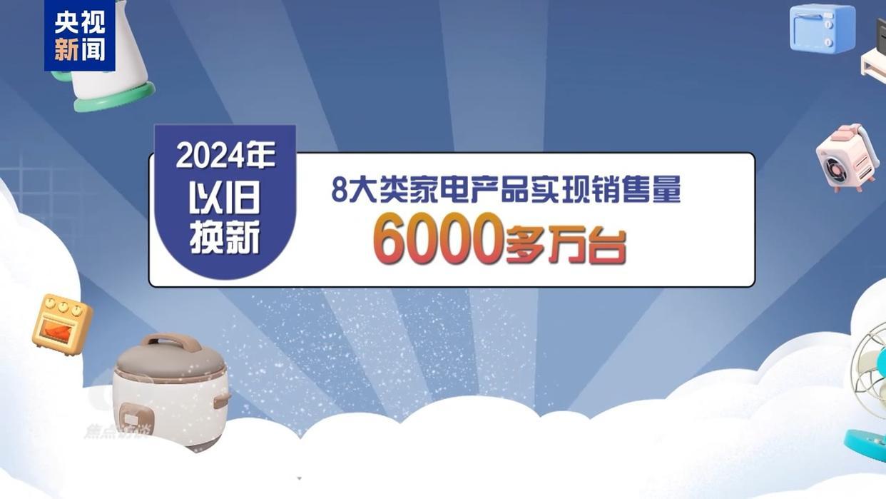 好政策带来了好成效。以家电市场为例,2024年,中央加力支持以旧换新8大类家电产品实现销售量6000多万台,直接拉动消费超2600亿元。