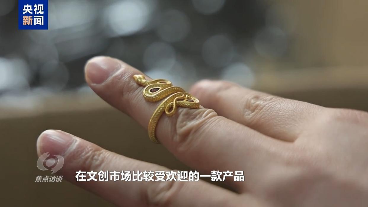义乌某饰品公司总经理 吴昊:这个是我们给国家博物馆做的一款新年生肖款,你看看,这个是一款戒指,就适合当下年轻人,在文创市场比较受欢迎的一款产品。
