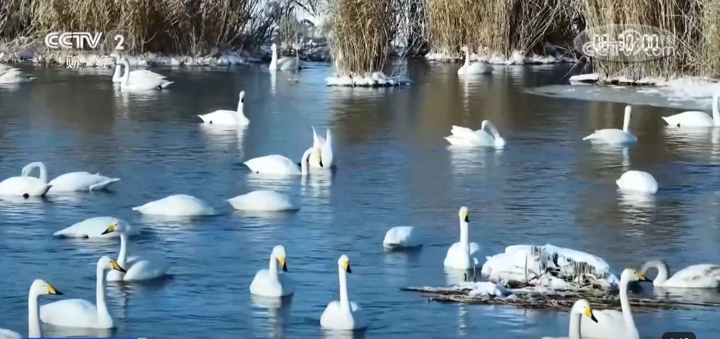 这两天,在玛纳斯国家湿地公园天鹅缘景区,近千只身姿优雅的大天鹅集聚在一起栖息觅食。洁白的大天鹅或卧或立,或引吭高歌,灵动的身影与茫茫雪景相互交织,游客纷纷拍照留念,捕捉最美的时刻。