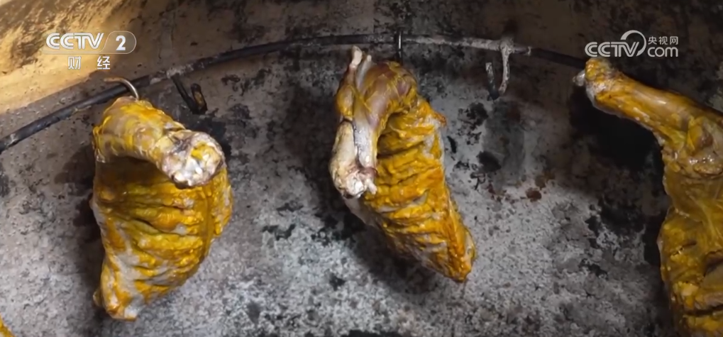 要说新疆美食,馕坑烤全羊那是必打卡的。新鲜的羊排配上面粉、鸡蛋、姜黄、食盐,放入200多摄氏度的馕坑中烤上大约1小时便可出炉。