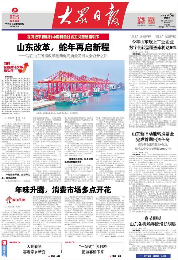 今年是“十四五”规划收官之年,也是进一步全面深化改革的重要一年。当经济总量距离10万亿仅一步之遥,山东将改革创新“置顶”2025年重点工作,以“关键一招”助力经济大省挑大梁,为实现“十五五”良好开局打好基础、蓄积能量。