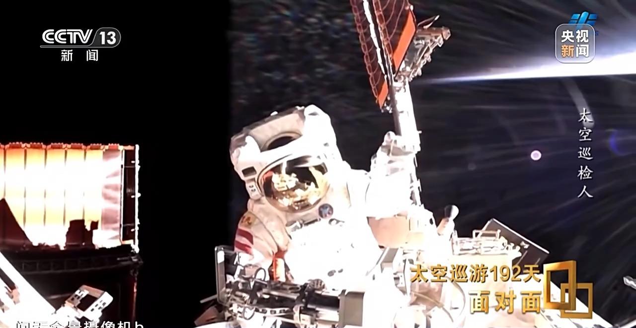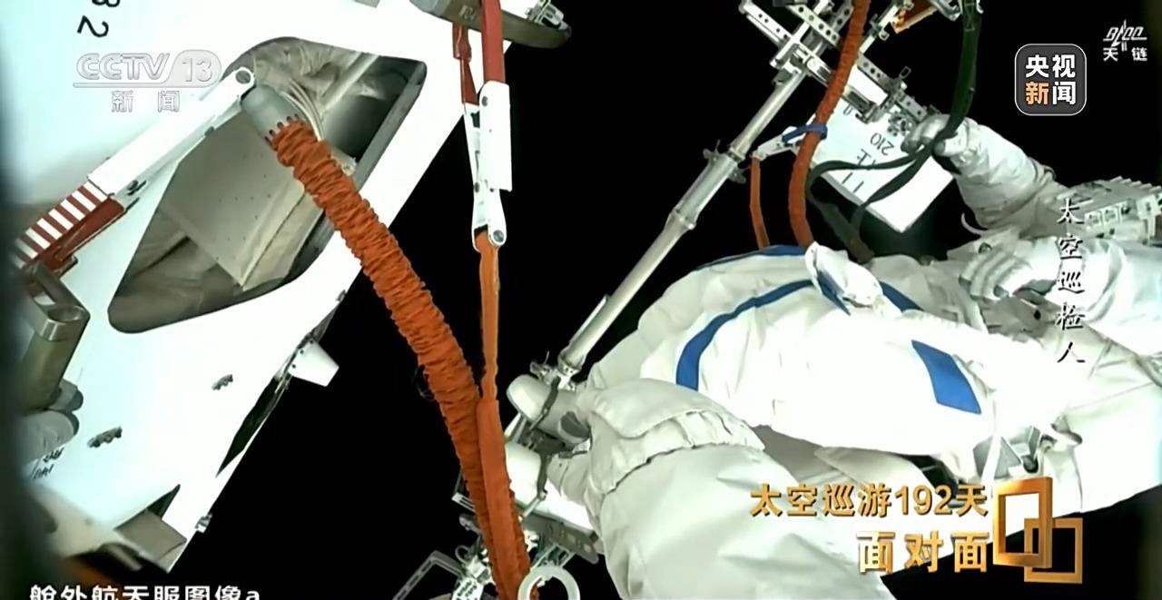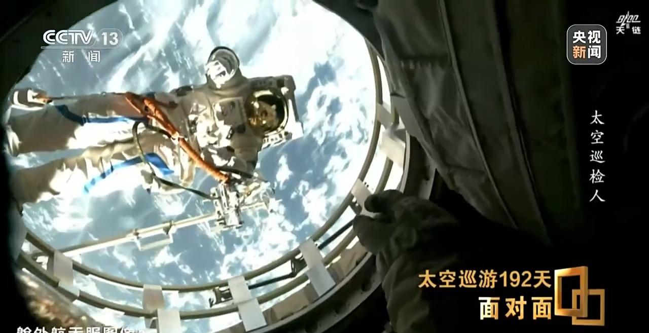 随后,航天员李广苏顺利出舱,他需要沿舱壁自主攀爬,对舱外设备设施进行巡检。