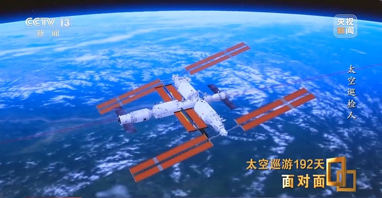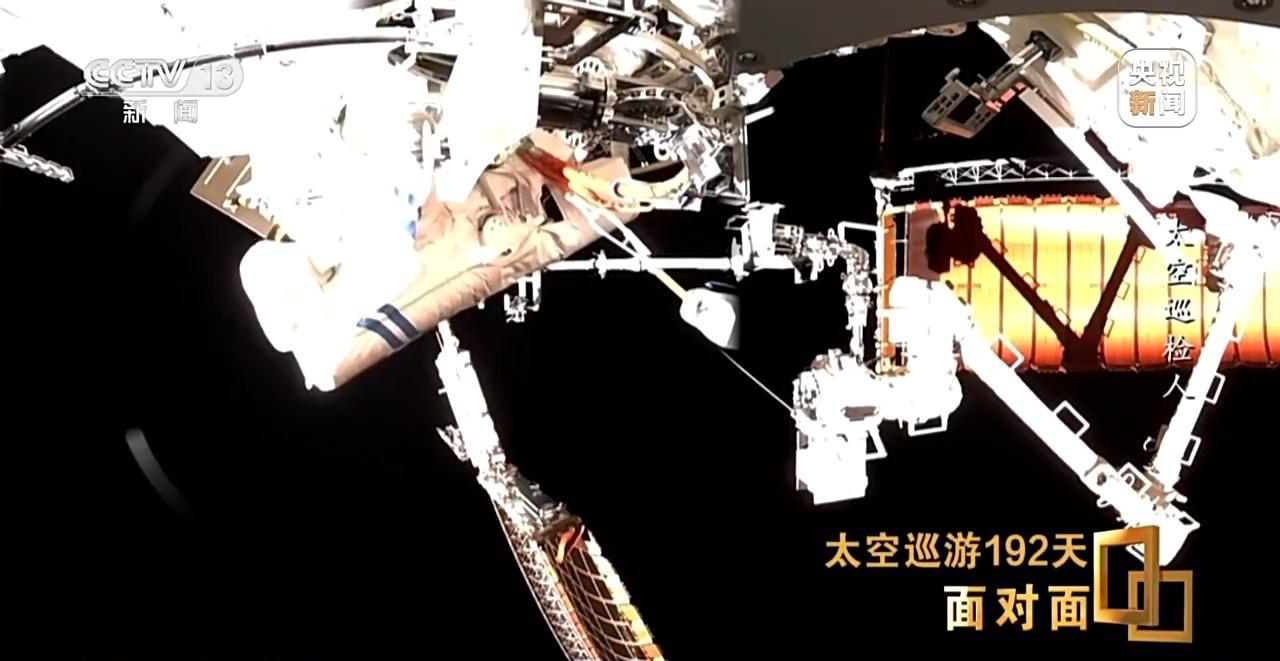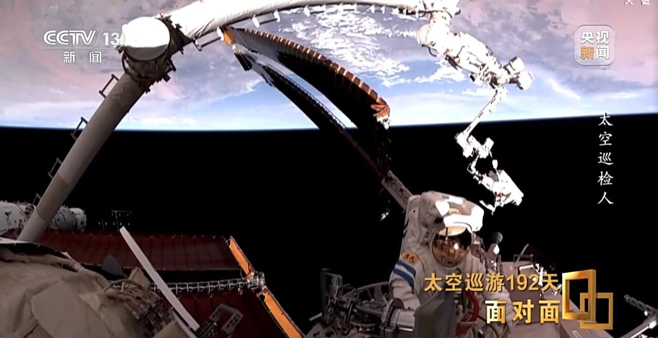 此次出舱活动,其中一项重要工作就是对实验舱太阳翼进行全方位巡检,叶光富搭乘机械臂对问天实验舱外的太阳翼进行巡检,李广苏则先攀爬至问天实验舱区域进行巡检,然后再到达梦天实验舱的区域进行巡检。