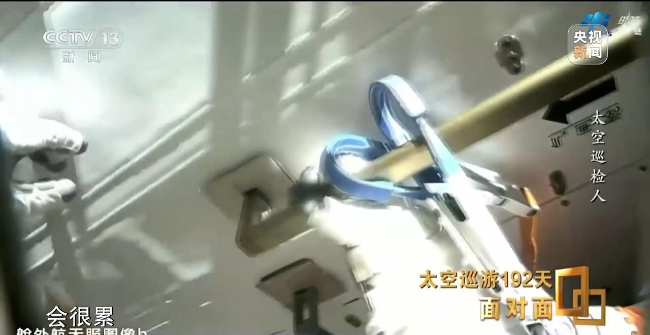 李广苏:爬时间久了之后手很累,因为手腕这块一直在持续地在发力,持续时间长了之后,需要停下来休息休息,再继续进行转移。特别是到了阴影区,阳照区还好,阳照区能看见空间站,包括地球看着比较踏实,比较安心。但是到了阴影区以后,你要不开灯,你就感觉下面深不见底,深邃的那种黑。