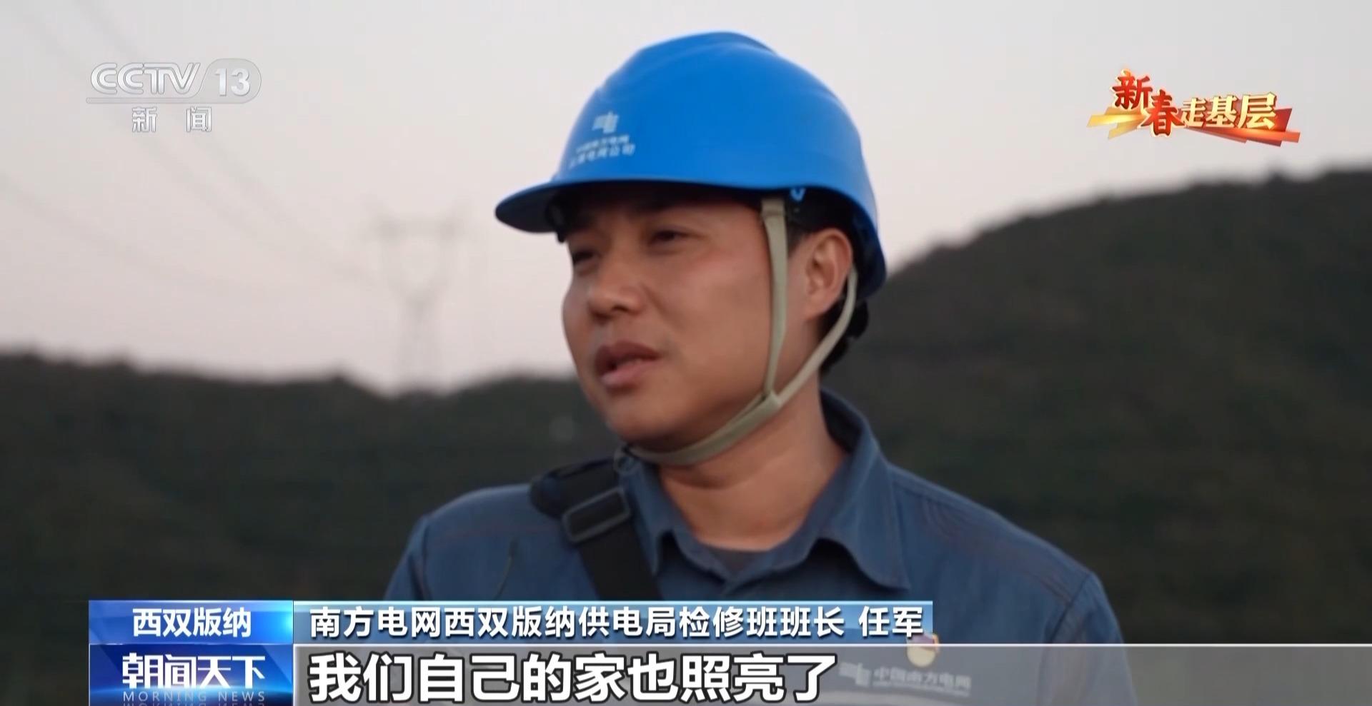 南方电网西双版纳供电局检修班班长 任军:工作就是这样的,总得有人去干,走过了每一基铁塔。我的孩子在城里面,万家灯火,我们自己的家也照亮了,所以我觉得都值得。