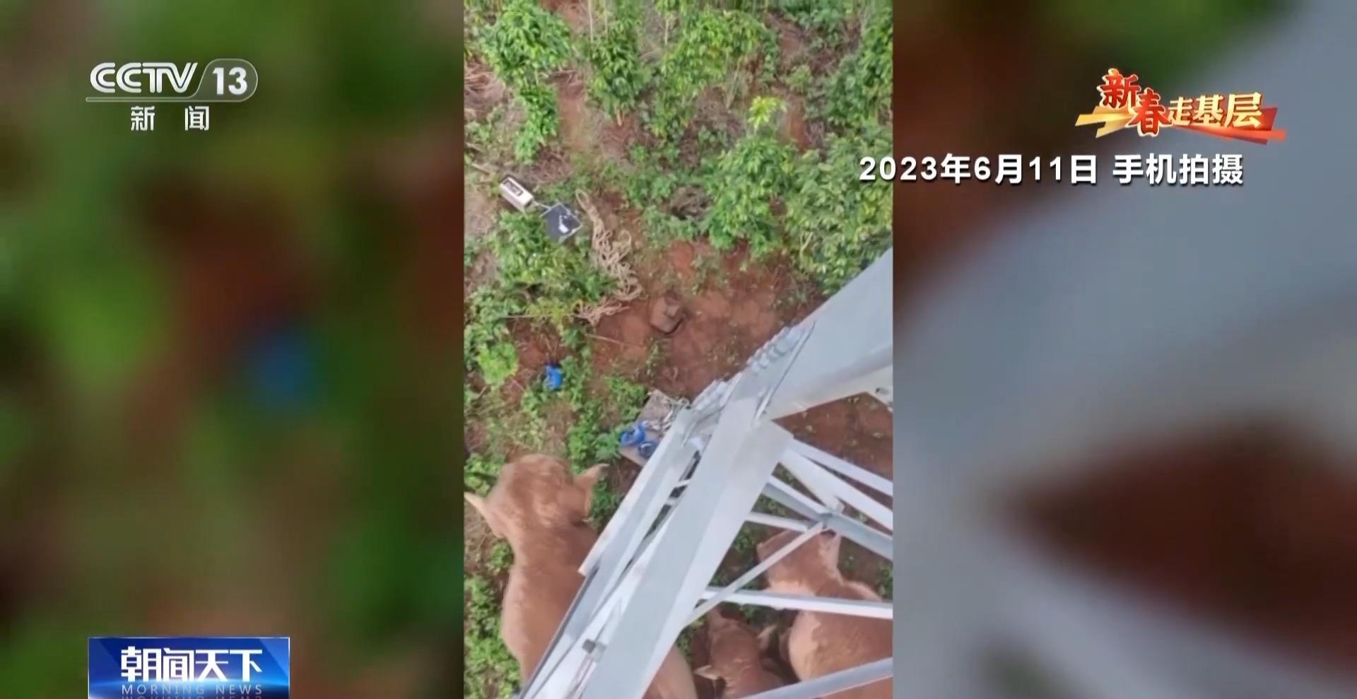 这次因为及时预警,大家避免了和野生亚洲象正面遭遇。但之前有一次,电力工人们在巡线时就偶遇了象群,还被围困在铁塔上,四五个小时才脱险。