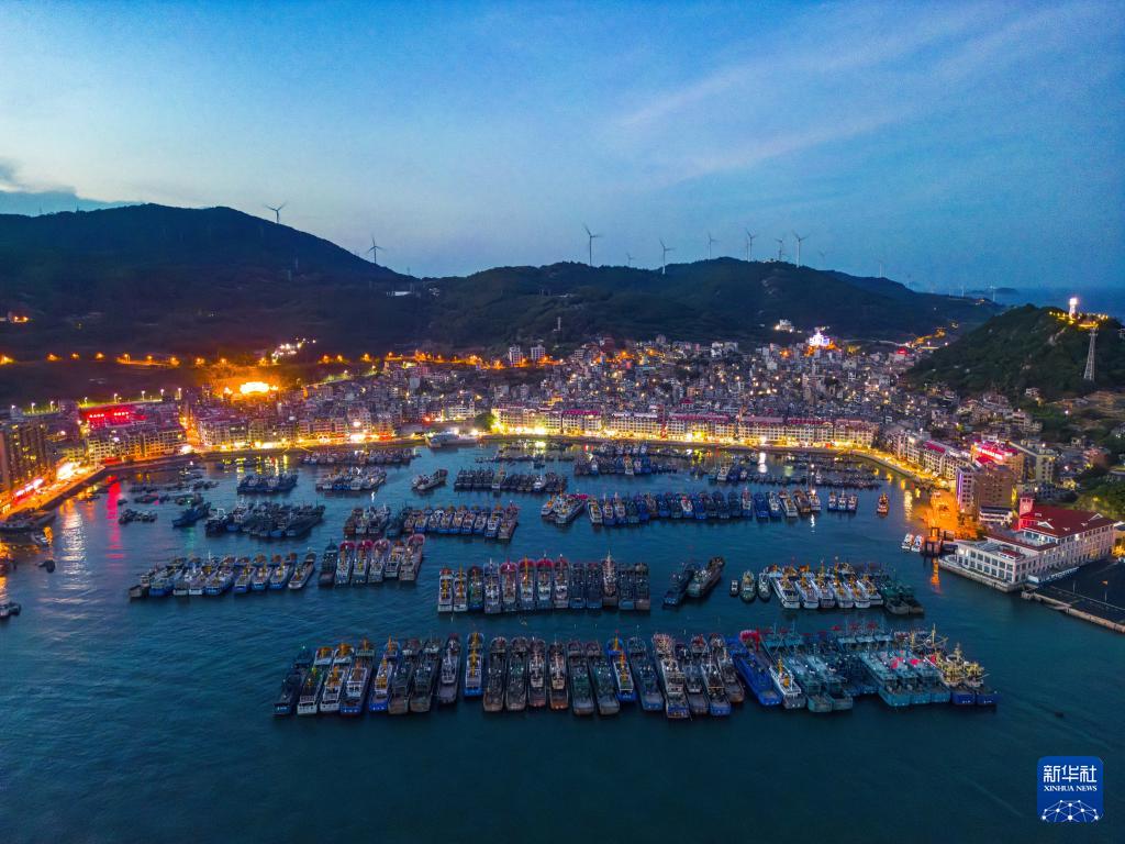 入夜的连江县黄岐中心渔港(2024年7月17日摄)。新华社发