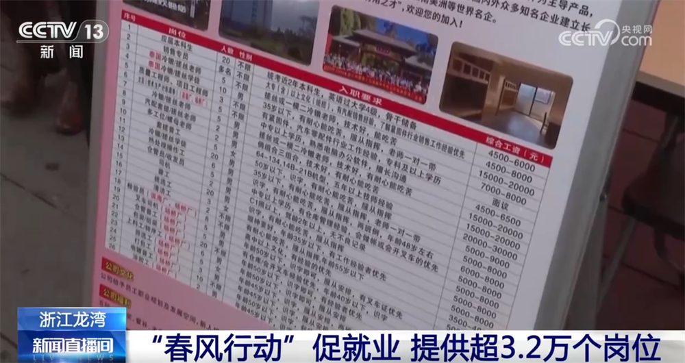 央视网消息:为满足企业用人和求职者就业的双向需求,近日,浙江温州龙湾区举行“春风行动”大型招聘会,此次招聘会采用“线下+线上”双轨并行模式,汇聚了近400家企业,提供超3.2万个岗位。