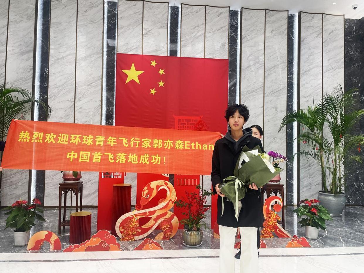 本次中国飞行也是郭亦森环球飞行的重要一站。对此郭亦森表示,能够亲自飞往自己的祖国,深表荣幸和激动,以特殊的方式回到祖国,也希望能够和中国的青年朋友们一起交流和学习,并且能够深入了解中国在低空经济领域飞速发展的情况。