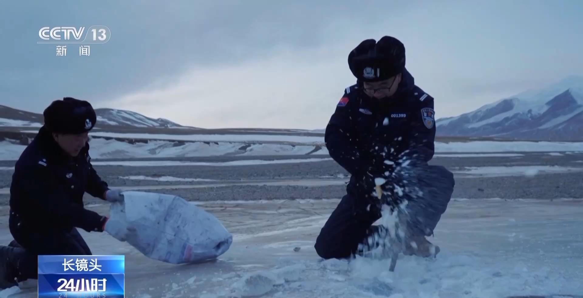 可可西里森林公安局民警 张明刚:去前面这个河里取个冰,因为出来的时候带的水是有量的,喝完以后纯净水就没了,我们只能去山后面那个河里打结的那个冰,把冰凿开以后带回来,烧开以后我们再喝。