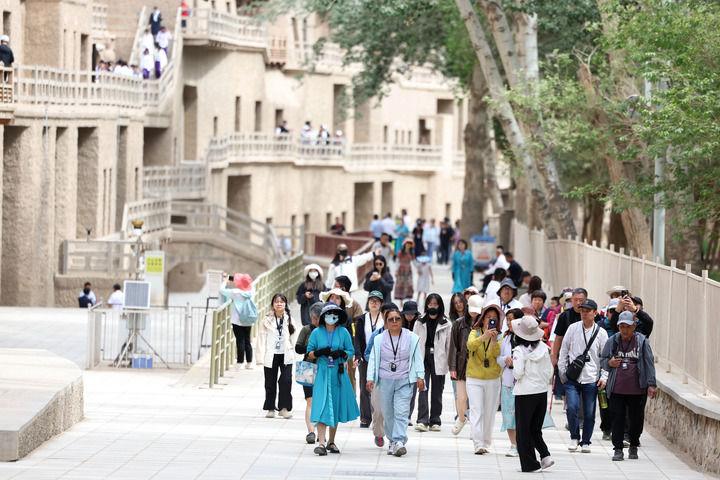 2024年6月7日,游客在莫高窟参观游览。新华社记者 郎兵兵 摄