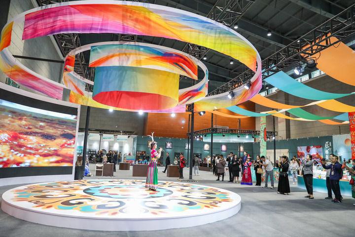 2024年9月21日,与会嘉宾在第七届丝绸之路(敦煌)国际文化博览会上参观。新华社记者 郎兵兵 摄