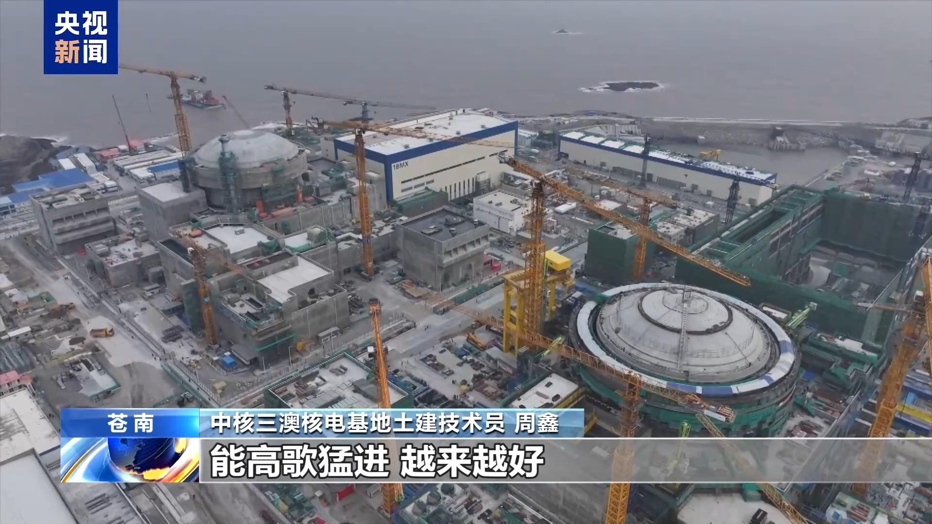 总台央视记者 李宁:三澳核电项目二号机组的穹顶距离地面接近60米,目前工程整个的进展是,一号机组在3月底进行设备的联调联试,按照计划在今年年底将实现并网发电,二号机组目前在进行设备安装。此外还有三号机组和四号机组也都在进行开工前的准备工作,来自五湖四海的建设者奋战在项目一线,来全力推进项目的工程进展。
