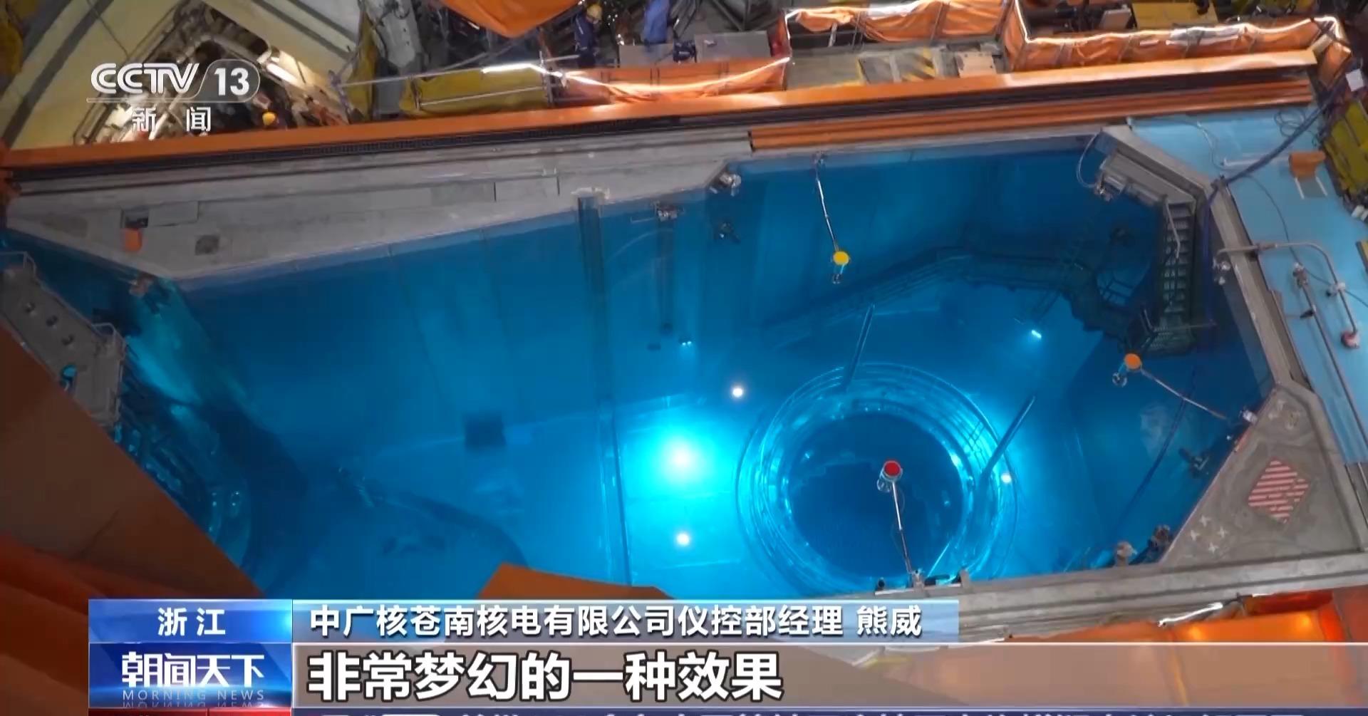 中广核苍南核电有限公司仪控部经理 熊威:这个区域就是整个核岛厂房最核心的区域,我们一般叫反应堆水池。这里面的液体是含硼酸的溶液,所以呈现的效果是非常漂亮,非常梦幻的。现在因为是整体的系统调试阶段,这个阶段把水先充上,检查整个水池的泄漏情况,主要是对前期的密封效果进行检验。