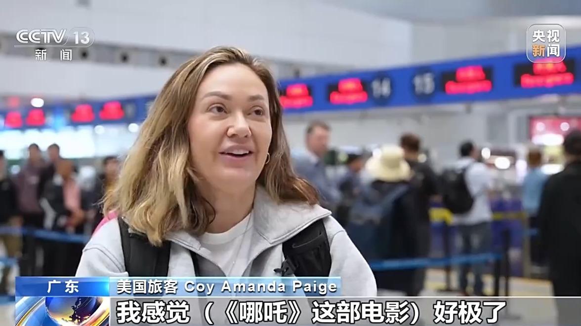 美国旅客 Coy Amanda Paige:我来自美国,我感觉《哪吒》这部电影好极了,我想让我女儿看,我想她会喜欢的。