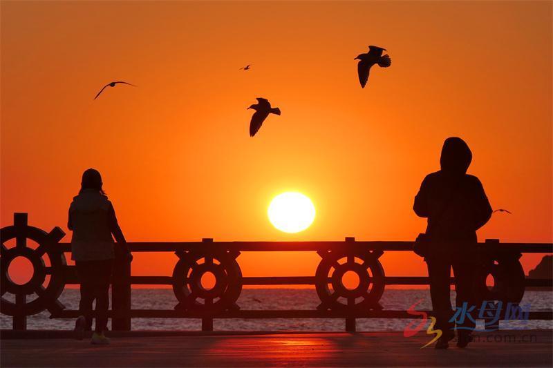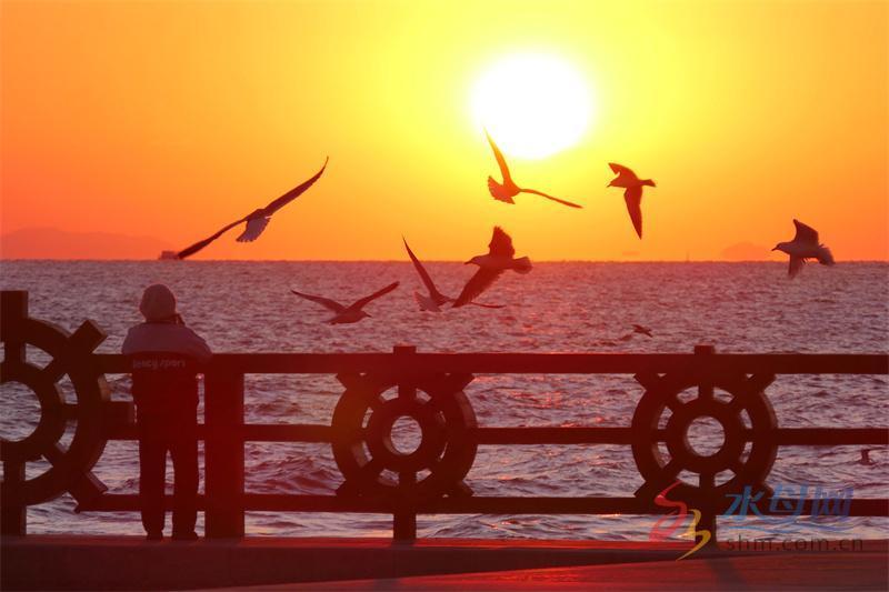 2月22日清晨,在烟台海滨,一轮红日冉冉升起,海鸥翩翩起舞,一片欢腾,构成城市一道美丽的风景线。早起的市民纷纷举起相机,记录下这一美丽瞬间。 YMG全媒体记者 唐克 摄
