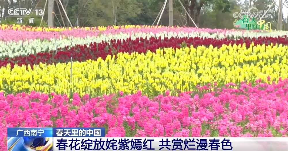 在广西南宁园博园,现在各类花卉也竞相绽放,姹紫嫣红、春意盎然。下面就跟随总台记者一起去那儿看看。