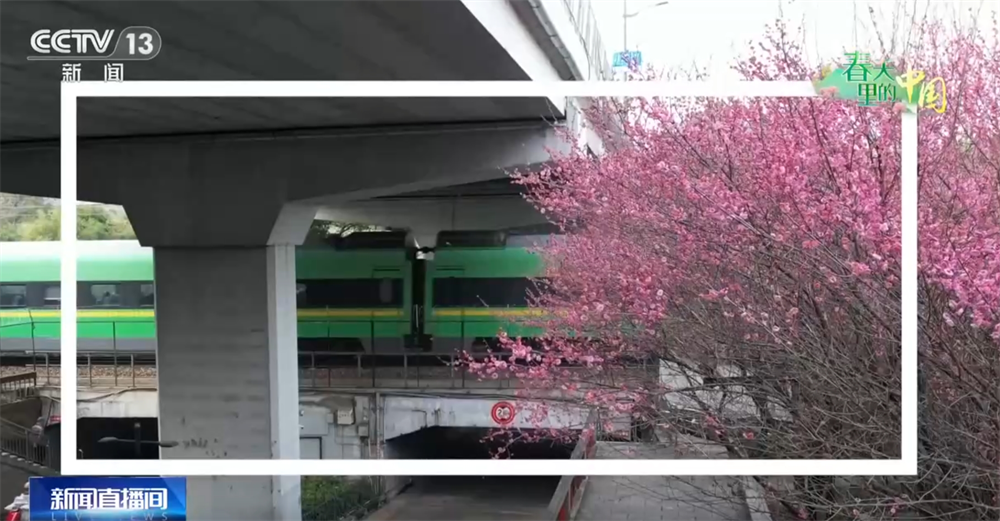 春天到了,不知道大家都赏花了吗?其实除了去山野探花,您还可以在城市的角落偶遇一抹春色。比如说,在这个街角,只需要等待上几分钟,您就能见证一场列车与春花的浪漫邂逅。